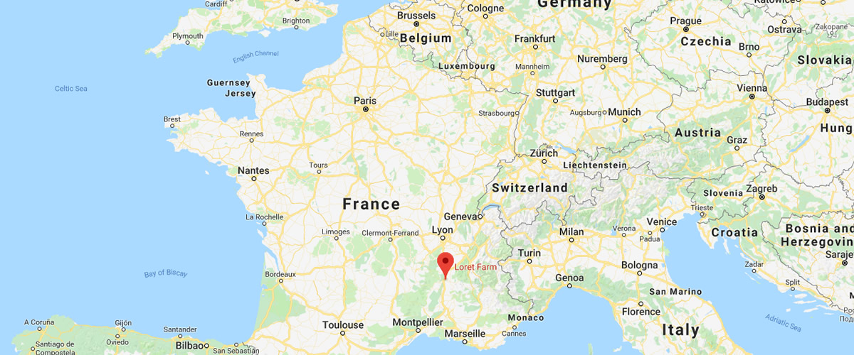 Le Loret is 3km north of Cliousclat, in the Rhone-Alpes area of South East France. Situated in a large natural amphitheatre surrounded by mature oak forest, with a 1.5km drive serving only Le Loret - the sense of privacy and escape is exceptional.